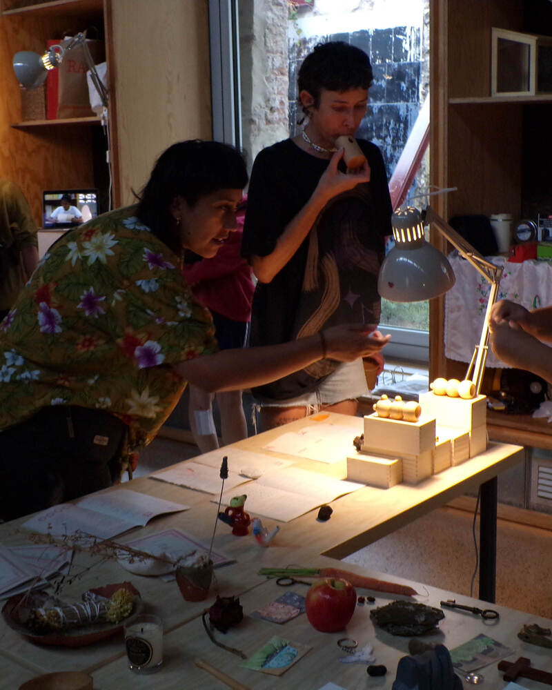 L'artista Julia Gorostidi instal·larà una sèrie de petits objectes, dibuixos i paraules que ha anat recollint al llarg del temps. Cadascun d'ells està vinculat a un conte, una frase feta, una superstició, una curació popular o una llegenda. La idea és que cada objecte funcioni com una porta d'entrada a un relat. La intenció és desenvolupar un sistema d'intercanvi de contes que convidi als visitants a escoltar, contar i deixar un relat a canvi d'un altre.