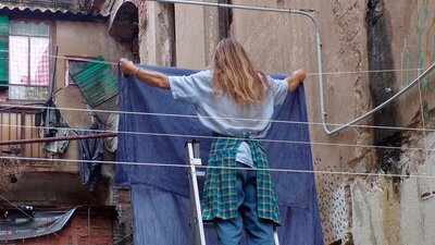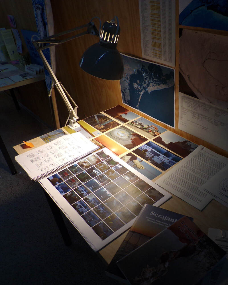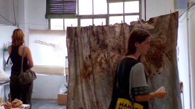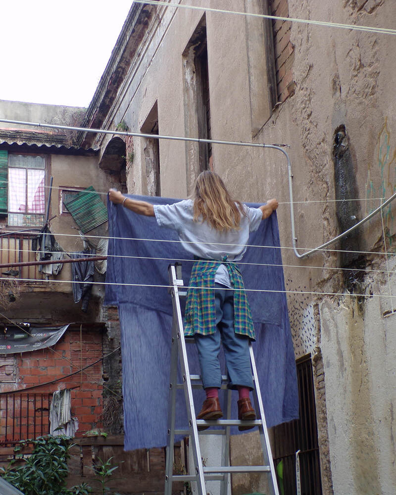A manera de “roba estesa”, d'un costat a l'altre i a diferents alçades, s'anirà conformant una instal·lació tèxtil amb els colors obtinguts. Les teles resultants quedaran per a l'ús com a estovalles, draps, tovallons i altres elements tèxtils a La Escocesa.
