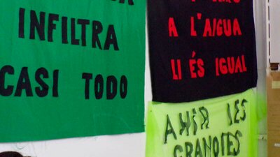 Aiguaneix és el nom que està prenent un projecte incipient i obert dedicat a pensar-nos en convivència amb els cuerpes d'aigua que circulen en La Escocesa. En el marc de els Tallers Oberts, proposem una petita mostra o suport expositiu en l'espai de la Peixera, on desplegarem les primeres referències i documentació del procés de recerca del qual neix Aiguaneix per a obrir-lo a residents interesades i recopilar experiències col·lectives. L'espai inclourà mapes, cartografies, articles i imatges de canalitzacions antigues, mesuraments de pH d'aigües (tolls, aixetes, sòls o recipients de La Escocesa), materials impresos i enquestes obertes al públic. Aquest display servirà tant per a compartir públicament el punt de partida de Aiguaneix com per a convidar al públic local i a socies a contribuir i recollir informació, dubtes i desitjos.