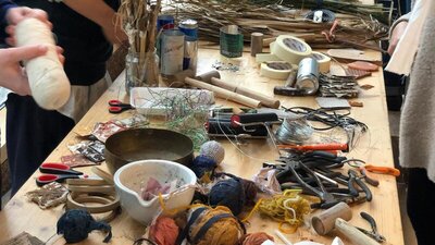 This open workshop is centred on gathering, making, and spending time together through simple handwork. It is an invitation to experiment and play with locally foraged materials — weaving, painting, assembling, and dyeing — as a way of exploring how we build connections to the environments we live in. The focus is not on producing a finished object, but on process: learning from materials, sharing knowledge, and making space for conversation.