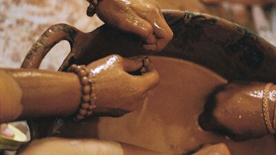 En paralelo, mantengo una práctica material, principalmente con barro, que he desarrollado durante los últimos cinco años como un espacio encarnado para pensar/sentir/percibir/intuir. Más recientemente, esta práctica se ha integrado en mi trabajo proyectual, incluyendo vasijas para sembrar duelos en colaboración con Andi Icaza en La Escocesa, y clay bodies, displaced soils, en Hallo Festspiele, Hamburgo.