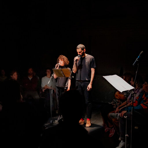 In a recent correspondence spanning several months, the pair exchanged reflections, quotidian anecdotes, readings, poems, recordings of songs and recitations. The performance acts as an active labour of selecting, remembering, re-enacting, restructuring, reassessing, and reassembling elements from the correspondence, as a way to grapple with a heightened historical moment characterised by a peak in the constant hum of genocidal violence that has structured the artists’ respective trajectories.