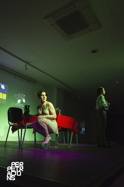 La Metro and Letizia Miro share several concerns, and this synergy makes the political and poetic discourse shared and eager to explore it together. The question “Why are creativity and sex problematic when transactions occur?” brings two worlds, the culture industry and the sex industry, into dialogue. As capitalism continues to turn life into constant production, “Work Addiction and Dissociative States” explores the possibility of other ways of being, beyond the commodification of existence. Can we really dissociate ourselves from work? Or is dissociation itself a form of survival? [With the collaboration of the performers Tur Morán and Ken Pollet].
