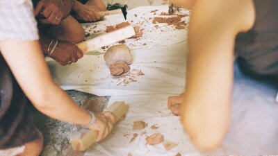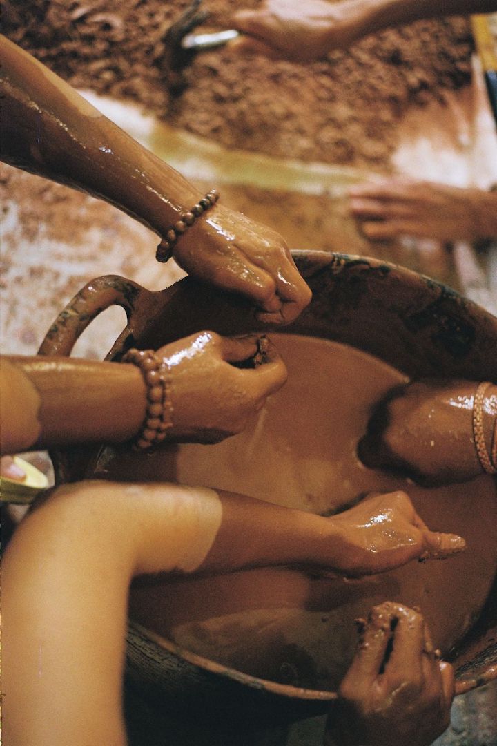 En paralelo, mantengo una práctica material, principalmente con barro, que he desarrollado durante los últimos cinco años como un espacio encarnado para pensar/sentir/percibir/intuir. Más recientemente, esta práctica se ha integrado en mi trabajo proyectual, incluyendo vasijas para sembrar duelos en colaboración con Andi Icaza en La Escocesa, y clay bodies, displaced soils, en Hallo Festspiele, Hamburgo.